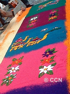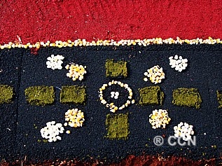 en las siguientes tres alfombras incluyó la colocación de maíz