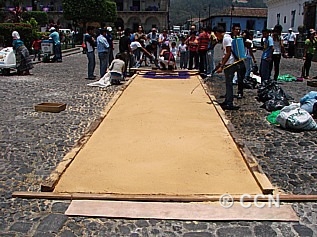 elaboración de una alfombra de aserrín, ésta debe mantenerse