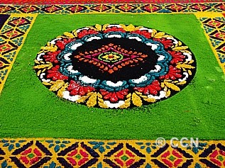 en las siguientes tres alfombras incluyó la colocación de maíz