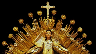entregan a ese peregrino la sagrada imagen de Nuestra Señora,