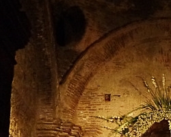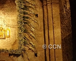 ruinas de Catedral se ornamentan e iluminan con flores y velas