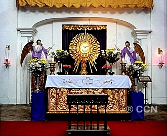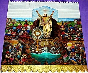 viva, y una Custodia que representa al Santísimo Sacramento,