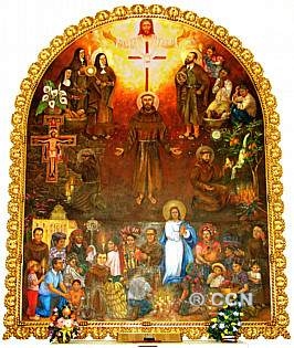 Se representa a frailes franciscanos, religiosas, y al ahora
