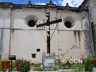 jardín en el que se colocó una Cruz que sostiene figuras que