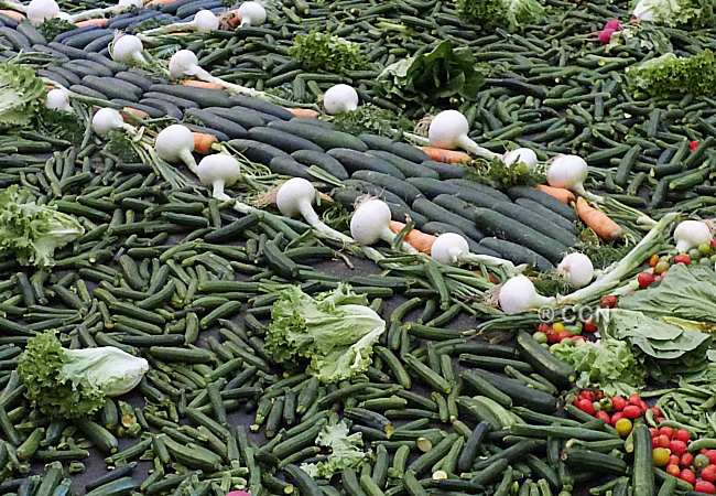 Vegetales: pepinos, lechugas, rábanos, arvejas, coliflores,