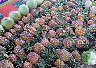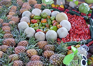 zanahorias; y (frutas) piñas, sandías, melones y mangos:
