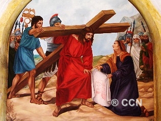Jesús, al enjugarte el rostro la compasiva Verónica.
