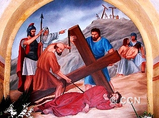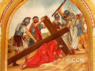 Jesús, cayendo por segunda vez bajo el peso de la Cruz.