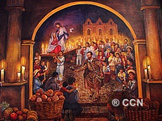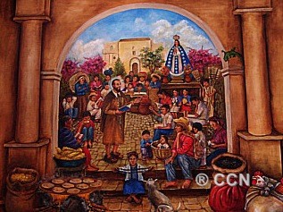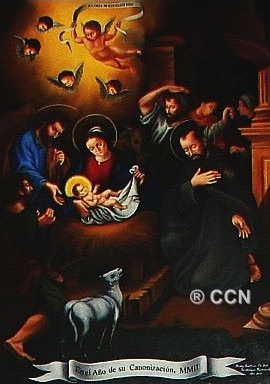 figura del Santo Hermano Pedro quien extasiado observa al