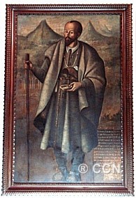 una efigie del Hermano Pedro, con su inseparable